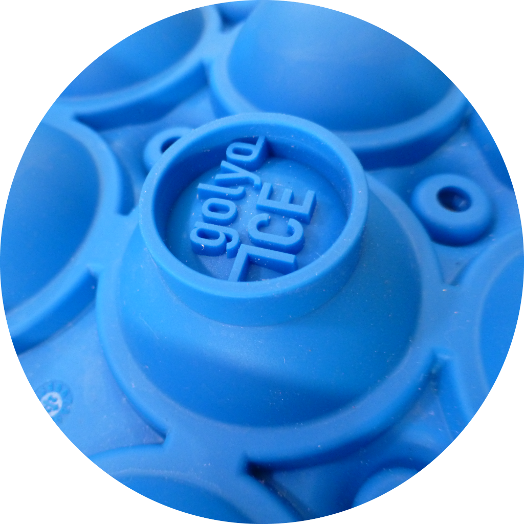 Die Golyo ICE Form besteht aus zwei Teilen und reinem Silikon. Sie ist absolut dicht, da die obere und untere Hälfte ähnlich wie bei Tupperware miteinander verschlossen werden können.