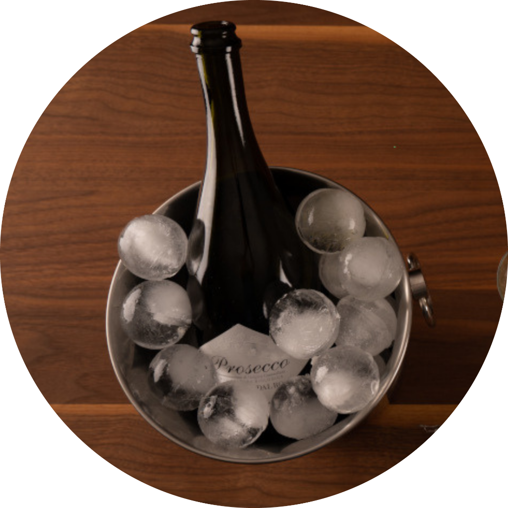 Eine Kugel ist die geometrische Form welche die kleinste Oberfläche im Verhältnis zum Volumen hat. Deshalb ist diese Form ideal für «Eiswürfel».